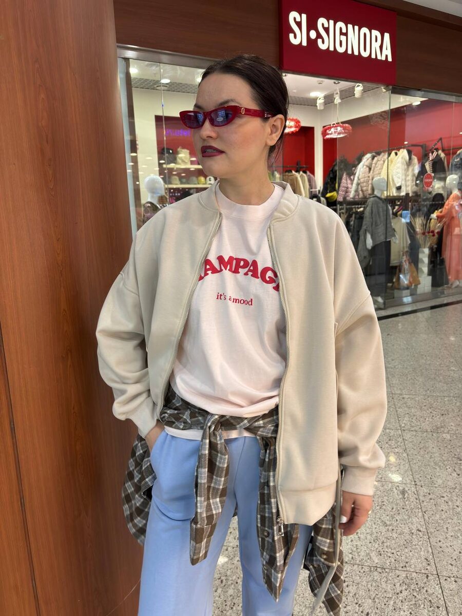 Спортивный образ из абсолютно самостоятельных вещей. Многослойность позволит чувствовать себя уверенно при смене погоды. Удобно брать в путешествие или долгую прогулку. Бомбер 7.800₽ Брюки 6.800₽ Рубашка 6.200₽ Футболка 4.800₽ Очки 3.500₽