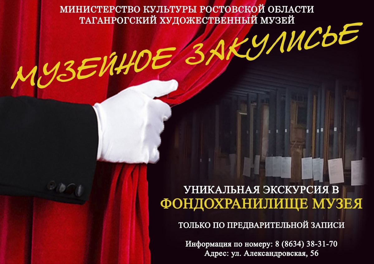 🌿Дорогие друзья! ‼️17 мая встречаемся все в музее! 👩🎨Одной из изюминок всероссийской акции "Ночь в музее" в Таганрогском художественном музее станет эксклюзивная экскурсия в фондохранилище «Музейное закулисье»! 🖼Только один день в году и только 17 мая 30 счастливчиков смогут увидеть, где "живут" картины, как они хранятся... ☎️Открыта предварительная запись по телефону: 8 (8634) 38-31-70. ❗️Не упустите возможность побывать в «сердце» музея! 🏛Ждем по адресу: ул. Александровская, 56.