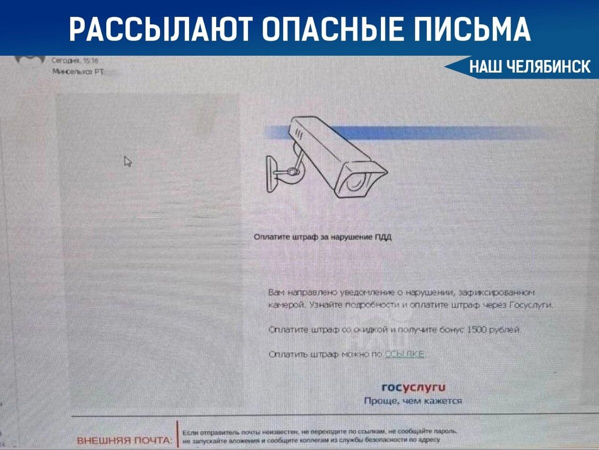 💰 Появились опасные письма со «штрафами» за нарушение ПДД. В них есть фото автомобиля и квитанция для оплаты, но деньги уходят мошенникам, сообщили в пресс-службе ГУ МВД России. Обратите внимание на получателя платежа: в настоящих квитанциях это Управление Федерального казначейства, а не электронная платежная система.