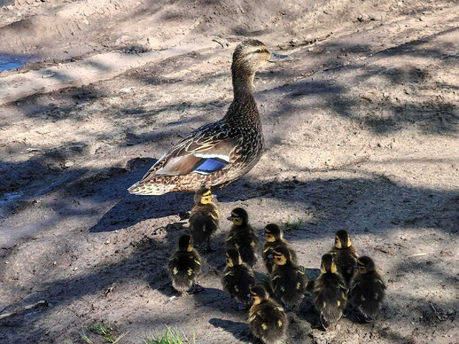 Представители Госохотинспекции быстро прибыли на место происшествия, чтобы помочь заблудившимся на дороге уткам. Совместно с сотрудниками завода «Точмаш» специалисты аккуратно поймали маму и всех её малышей.