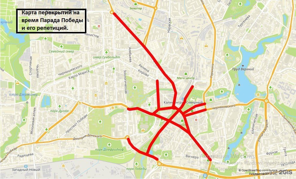 В Калининграде сегодня, 5 мая, в связи с проведением репетиции парада Победы будет временно ограничено движение транспорта в центре города. Ограничения будут действовать с 19:00 до 00:00. Перекрытие затронет следующие участки: