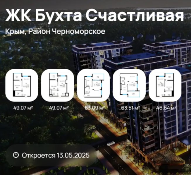 ➡️ Дорогие инвесторы! Хотите выгодно вложить средства и получить прибыль в ближайшее будущее? Тогда у вас есть уникальная возможность — приобрести квартиру в живописном жилом комплексе «Счастливая Бухта» на берегу Чёрного моря на 40% дешевле чем у застройщика!