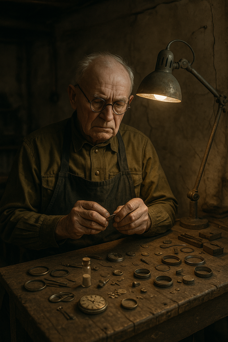 А потом жду чайник, и кажется, что старею прямо в процессе. Он пожал плечами. — И вот я придумал: где-то должен быть человек. Не волшебник. Не бог. Просто мастер. Он чинит время. Подкручивает, смазывает. Не возвращает, нет. Просто — следит, чтобы оно снова текло, а не дёргалось.