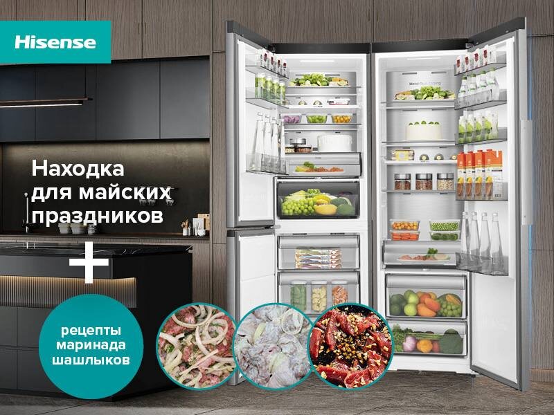 Май — время шашлыков, пикников и хорошей компании 🙌 Чтобы продукты оставались свежими, а отдых — беззаботным, нужен надежный и стильный холодильник. Холодильники Hisense серии PureFit идеально вписываются в любой интерьер благодаря удобной глубине 60 см, что позволяет легко встраивать их в кухонные гарнитуры. Кроме того, они предлагают отличную функциональность: RB3K330SAC1 — холодильник с морозильной камерой снизу 1. Fresh Box сохранит мясо и рыбу свежими 2. Отдельная полка для напитков 3. Глубокая заморозка до -28°C 4. Антибактериальный ящик с регулировкой влажности 5. Современный дизайн с утопленными ручками RL3K370SAIE — холодильный шкаф без морозилки 1. Идеален для большой семьи 2. Просторный, с Fresh Box зоной и отдельной полкой для напитков FT3K310SAIE — морозильный шкаф с функцией конвертации 1. Заморозка до -28°C 2. Можно использовать как холодильник (+2°C–+8°C) Все модели работают тихо, эффективно, идеально вписываются в любой интерьер и поддерживают беспроводное соедин