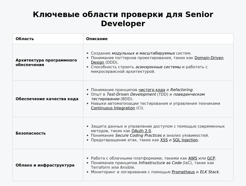 Подготовка к собеседованию для Senior Developer