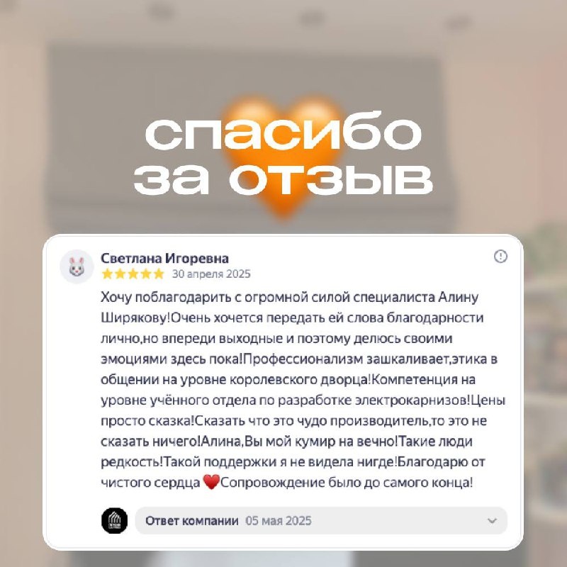 Мы не могли пройти мимо такого душевного отзыва ♥️ Большое спасибо, что делитесь мнением. Это вдохновляет наших сотрудников работать ещё лучше 🫰🏻 📞8-800-100-18-66 или оставляйте свою заявку на нашем сайте