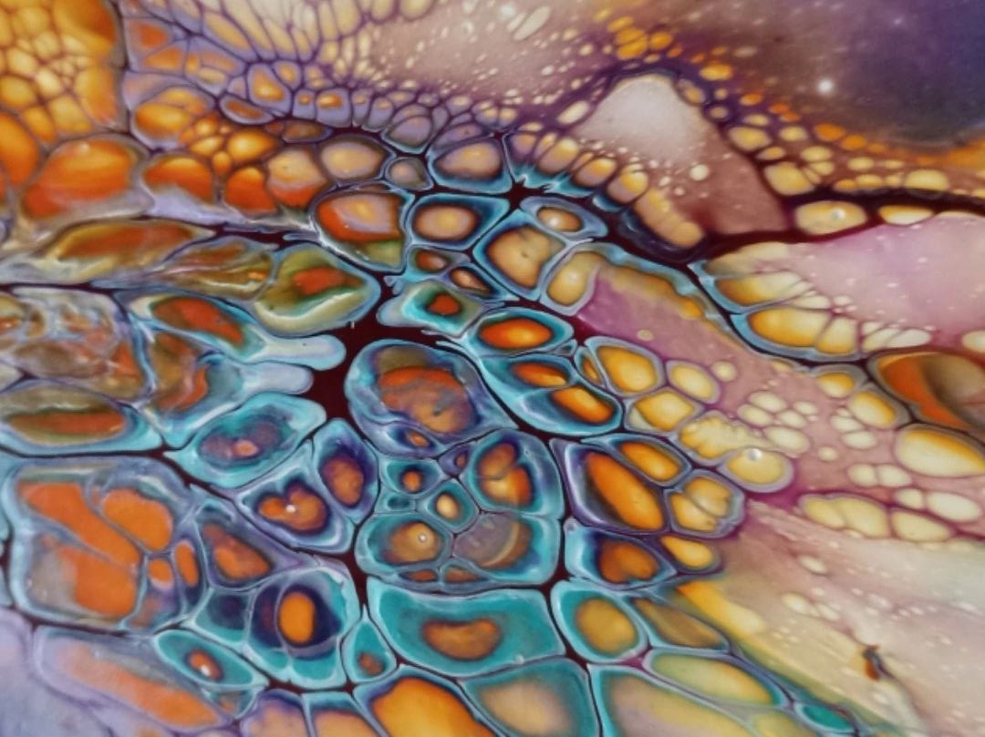 Одна из самых частых проблем, с которой сталкиваются новички в флюид арте — вместо красивых переливов и четких флюидов на холсте образуется мутная коричневая или серая масса. Почему так происходит? Можно ли это контролировать? Давайте разберемся подробно, от чего зависит чистота цветов и как подбирать оттенки, чтобы они не превращались в грязь. Почему краски смешиваются в грязь? 1. Слишком жидкая консистенция медиума. Чем больше воды в составе, тем активнее краски проникают друг в друга. Вместо плавных переходов получается хаотичное смешение, особенно если цвета контрастные. Как проверить? Если при наклоне холста краски растекаются слишком быстро и сразу смешиваются — медиум слишком жидкий. Идеальная консистенция — как жидкая сметана: медленно стекает, но держит форму. Что делать? Добавьте меньше воды или используйте более густой медиум. Если работаете с самодельным составом (ПВА + вода), попробуйте уменьшить количество воды и добавьте акриловый лак. 2. Неправильны
