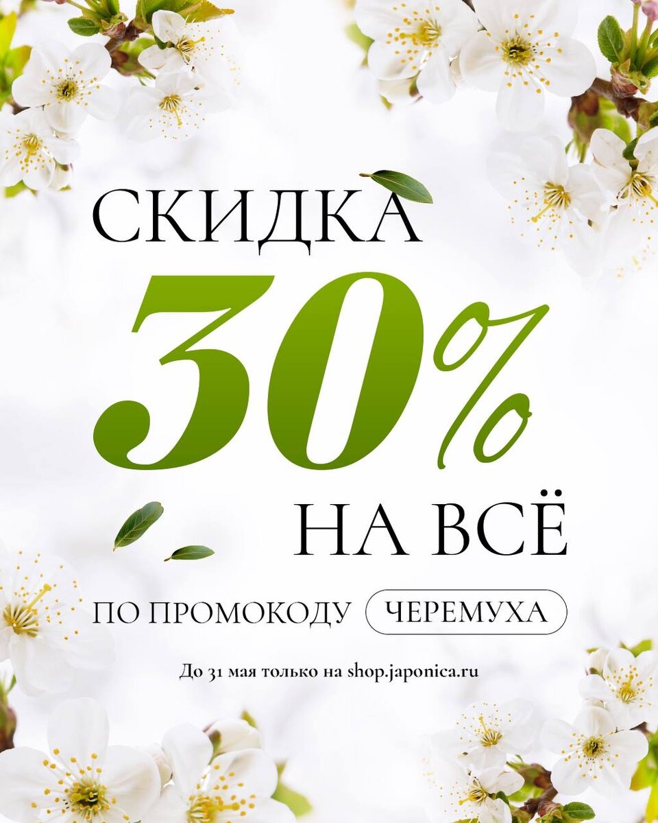 Используйте промокод ЧЕРЕМУХА при оформлении заказа на shop.japonica.ru, чтобы получить скидку 30% на всё❕