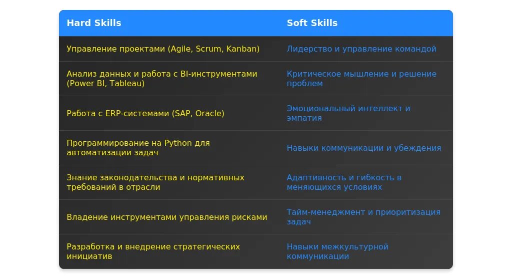 После адаптации: "Управление проектами, работа с CRM-системами (Salesforce, Bitrix), навыки бюджетирования и стратегического планирования."
