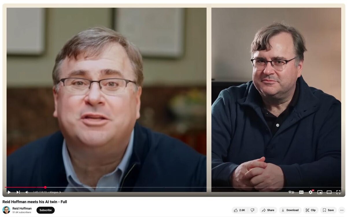 Ничего необычного. Просто основатель LinkedIn интервьюирует своего ИИ Аватара...
