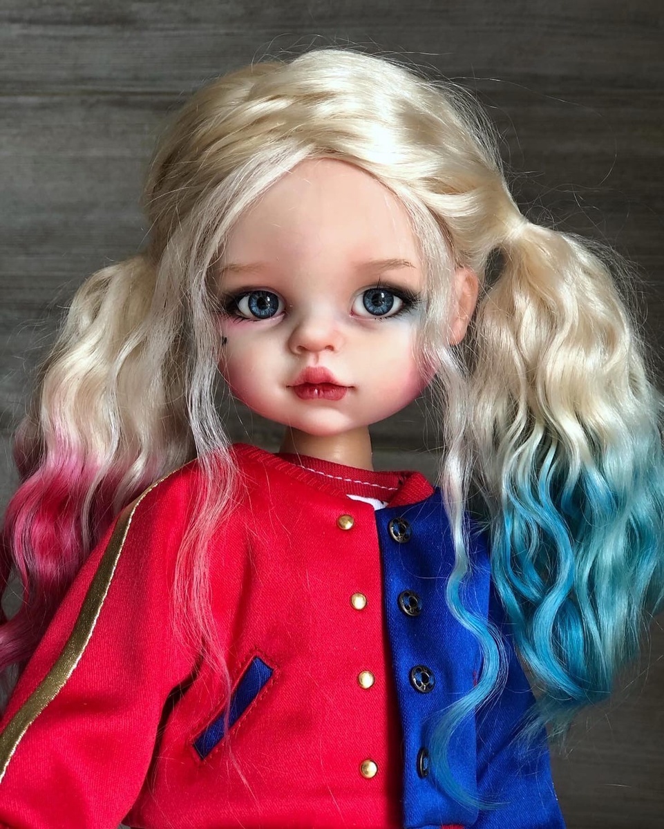 Сегодня хочу с вами пообщаться, да вот так, в комментариях. Предлагаю вам рассмотреть эти фото, но не просто так. Мастера этих кукол мы с вами, нашими подписчиками и гостями столицы страницы знаем уже давно. Ещё бы, ведь хозяйку, главную героиню этого канала, сделал этот же автор: У Галины Карповой замечательно получаются хараАктерные куклы, с эмоциями, и сказочные герои все узнаваемы, и даже герои фильмов. Думаю, все узнали дерзкую Харли Квинн, обожаю эту героиню. Я давно присматриваюсь к этому образу, но Марьяшу в нём не вижу. Вообще, этот образ - не для кукол "младшего возраста", он больше подходит "повзрослевшим": Что именно меня привлекло именно в этой "харликвинн-паолке" - сложно сказать, но очень хочется просто поставить её на полку рядом с Марьяшей, просто чтобы была, и смотреть на неё, смотреть... Это очень нетипичное для меня поведение, я никогда не стремилась "копить кукол", то есть коллекционировать, собирать их, отдавать им всё свое жизненное пространство. А вот этой кукл
