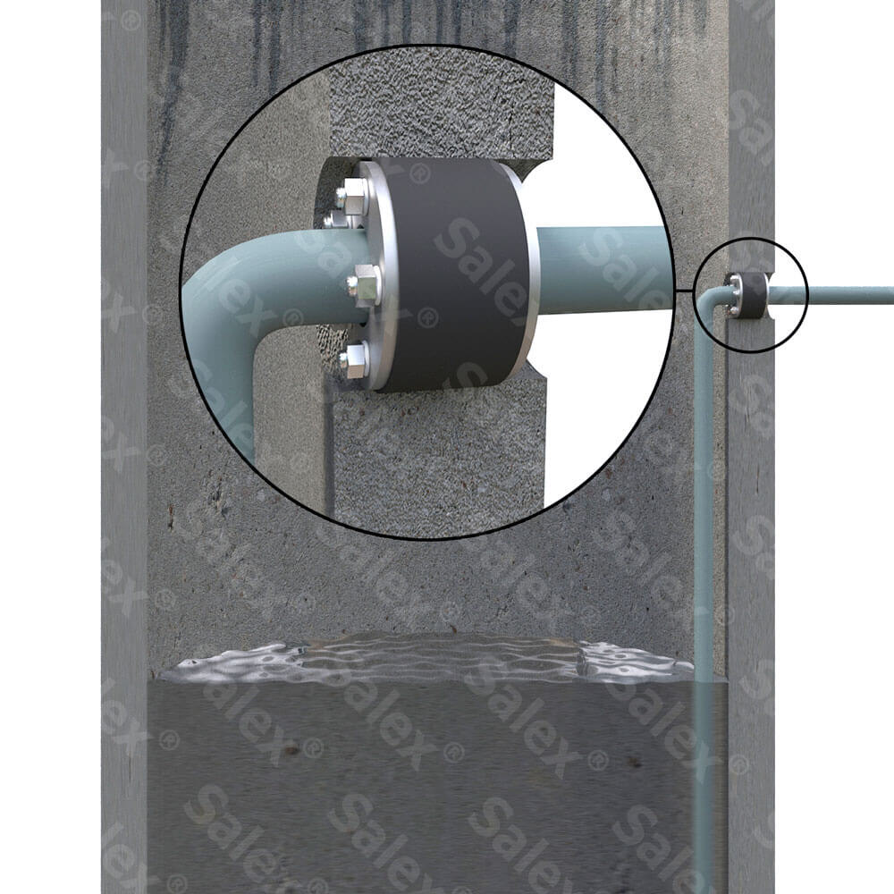 Обеспечение герметичности точки входа трубы в колодец — ключевой этап при строительстве водопроводных и канализационных сетей. Для питьевых колодцев надежная преграда между грунтовыми и чистыми водами — залог сохранения качества воды, а в системах канализации — защита окружающей среды от несанкционированного сброса стоков и сохранность самого трубопровода. Профессиональное решение — гермовтулка Современный стандарт — использование гермовтулок: комплекта из нержавеющих фланцев, эластомерного уплотнителя и крепежных шпилек. После алмазного бурения отверстия втулка вставляется с одной стороны стенки, опорное кольцо — с другой, а стяжные болты затягиваются крест‑накрест. Давление равномерно сжимает эластомер, заполняя все зазоры между трубой и бетоном. Результат — стойкая к перепадам давления и температур герметичная муфта, рассчитанная на десятилетия службы. Готовые узлы для сложных задач Компания «Salex» разработала линейку решений, учитывающих особенности объектов: Все узлы изготавливаю