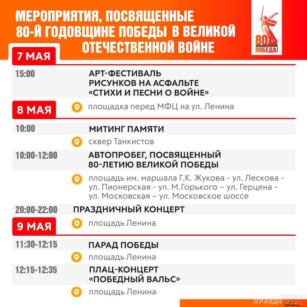 Вся страна в ожидании главного дня – 9 мая. К этой дате мы запланировали около 2 000 мероприятий: акции, концерты, поздравления и, конечно, парад на центральной площади и салют ⬆️
