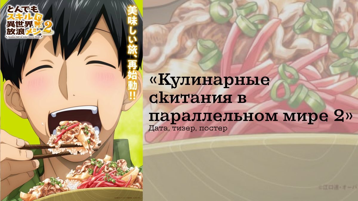 Твоя подписка и лайк — это огромная поддержка для меня! Я ценю каждого из вас и с радостью буду радовать новыми подборками и обзорами. Присоединяйся к нашему аниме-сообществу!🌸 Первый сезон, вышедший в 2023 году, получил высокие оценки зрителей за лёгкую атмосферу, яркую анимацию и аппетитное изображение блюд. История рассказывает о 27-летнем японце Цуёси Мукоде, который вместе с другими попал в магический мир. В отличие от товарищей, получивших героические способности, его дар кажется бесполезным - он может заказывать продукты из японского онлайн-магазина. Однако именно благодаря кулинарному таланту и необычному навыку Мукода быстро становится популярным в новом мире, а его блюда покоряют даже легендарных магических существ. Во втором сезоне зрителей ждут новые гастрономические приключения, свежие рецепты и встречи с уже полюбившимися персонажами - например, с могучим волком Фенриром и милой слизью Суи. По предварительным данным, сезон вновь будет состоять из 12 эпизодов, но точное к
