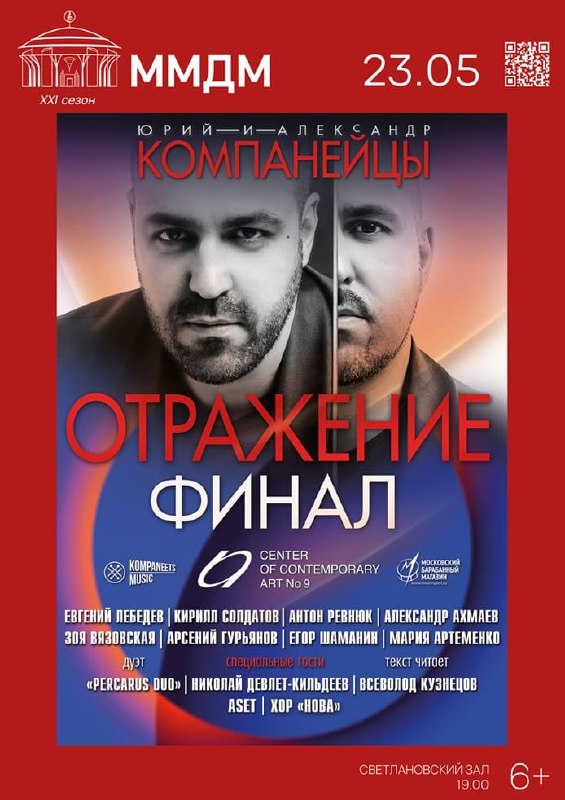 «Отражение». Финал. Что дальше?.. 23 мая 2025 в Светлановском зале Московского международного дома музыки перкуссионисты Юрий и Александр Компанейцы и их творческая команда завершают мульти-инструментальную трилогию «Отражения». https://www.classicalmusicnews.ru/anons/otrazhenie-final-chto-dalshe/?utm_source=cmn_own&utm_medium=telegram