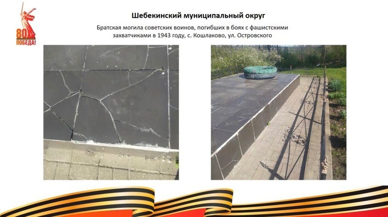 В Белгородской области ускорят восстановление военных памятников Четыре мемориальных объекта Великой Отечественной войны в Белгородской области требуют срочного ремонта. Как сообщила заместитель губернатора Ольга Медведева на заседании регионального правительства, из 152 военных памятников региона 148 уже приведены в порядок, семь капитально отремонтированы, но четыре объекта всё ещё нуждаются в восстановлении. Губернатор Вячеслав Гладков потребовал сократить сроки реставрационных работ. Братскую могилу советских воинов в селе Кошлаково Шебекинского округа и мемориал мемориал на южной фасе Курской дуги в Яковлевском округе теперь необходимо восстановить до 1 июня, а не до осени и 12 июля соответственно, как планировалось ранее. — Памятники в плохом состоянии – вещь недопустимая. Примите меры: работы можно выполнить гораздо раньше, — отметил губернатор. К началу мая в регионе уже устранили все замечания по 38 памятникам, находившимся ранее в неудовлетворительном состоянии. Подписат