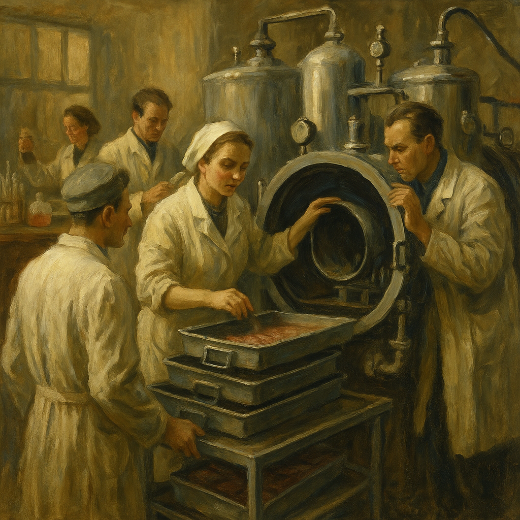 Во время Великой Отечественной войны каждую секунду решили судьбы раненых: стояла борьба не только с пулями, но и с инфекцией, обезвоживанием и недостатком медикаментов. Лиофильная сушка — процесс высушивания под вакуумом и низкой температурой — позволяла сохранять кровяную плазму и лекарства без холодильников, вплоть до отправки прямо на фронтовые госпитали. Без этой технологии инфузия пациента могла стать невозможной. Сегодня лиофильная сушка повсеместно используется для фруктовых и кофейных порошков, биодобавок и вакцин. Рождение метода и его принципы