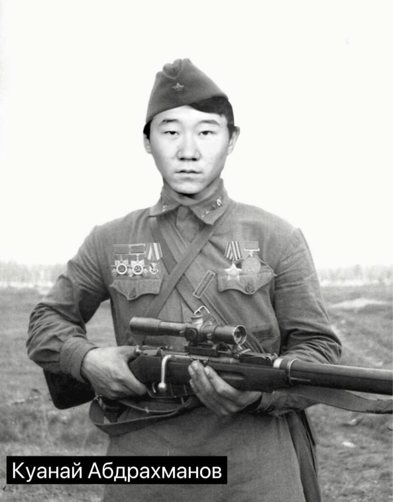 Дата рождения: 1922 год Место рождения: село Карабутак, Актюбинская область, Казахстан Куанай Абдрахманов был призван на фронт 12 марта 1942 года. Служил в