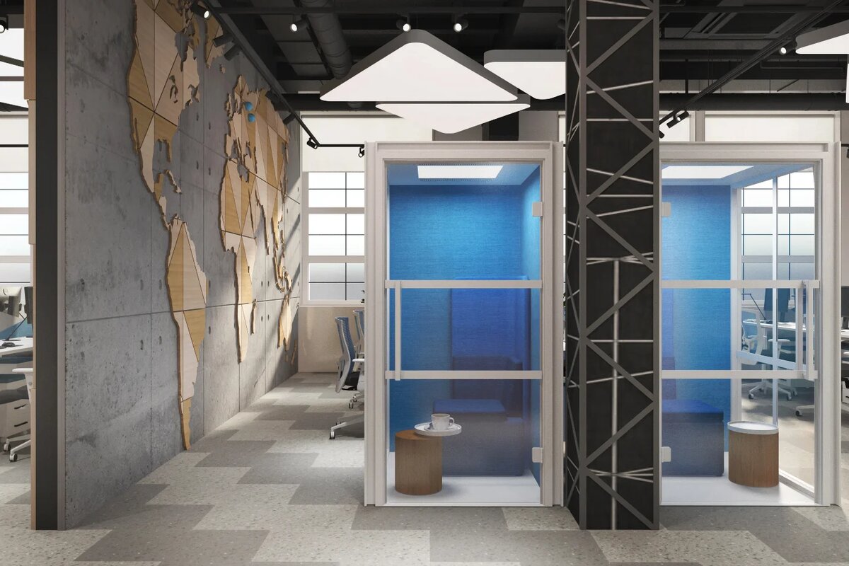 Π Π°Π±ΠΎΡΠΈΠ΅ Π·ΠΎΠ½Ρ ΠΎΠ±ΠΎΡΡΠ΄ΠΎΠ²Π°Π½Ρ ΡΡΠΌΠΎΠΏΠΎΠ³Π»ΠΎΡΠ°ΡΡΠΈΠΌΠΈ ΠΏΠ°Π½Π΅Π»ΡΠΌΠΈ, Π² ΠΏΠ΅ΡΠ΅Π³ΠΎΠ²ΠΎΡΠ½ΡΡ