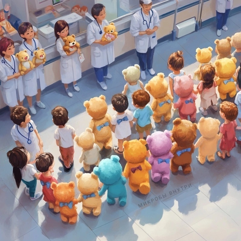 Исторически так сложилось, что нашу кафедру по какой-то причине разместили не в университете, а в стенах больницы. Поэтому я часто наблюдаю, чем занимаются медработники в сим учреждении. И вот, во время обеденного перерыва, мне посчастливилось увидеть, как детей, держащих подмышками плюшевых зверей всех мастей, вели гуськом по больничным коридорам. На мой немой вопрос ответили: сегодня проходит день открытых дверей в больнице «Плюшевый мишка». Концепция «Больницы для плюшевого мишки» началась с небольшого однодневного образовательного проекта в Бостонском ожоговом институте Шрайнерс, и через Скандинавию добралась до Центральной Европы. В этот день, обычно раз в год, дети младшего возраста (от 4 до 7 лет) могут привести своего любимого плюшевого на осмотр. В моём случае большой холл был разделён на отделения: были кабинеты для консультаций, лечения и даже операционные залы. Дети жаловались на «недомогания» игрушек, а студенты-медики принимались за лечение. Например, делали игрушечный ре