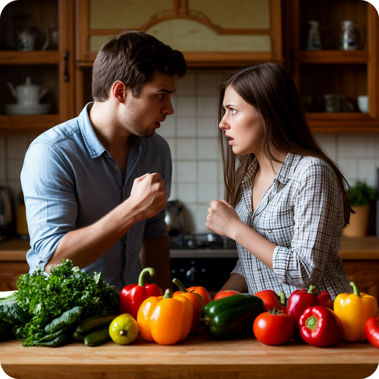 - Снова эти овощи, - поморщился муж. - Я же говорил, давай разнообразим меню. У нас разные вкусы...