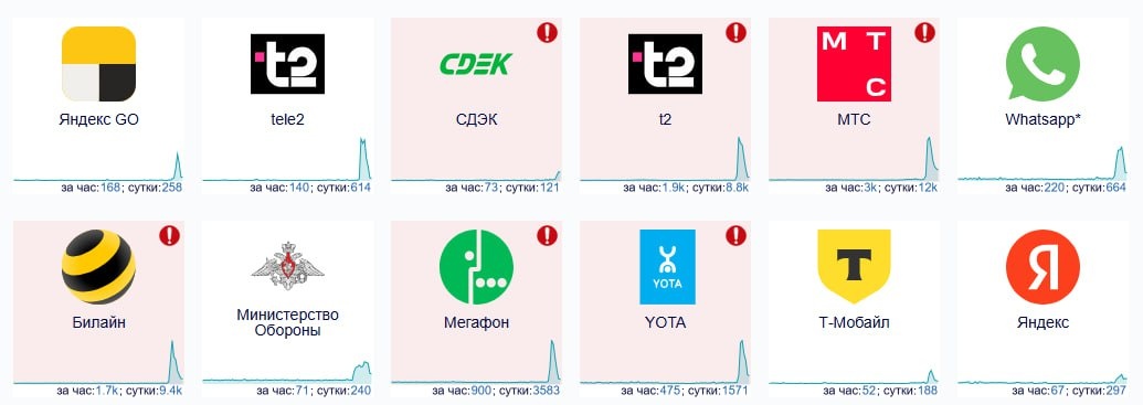 🥲 В РФ массово сбоят операторы, свидетельствуют данные DownDetector