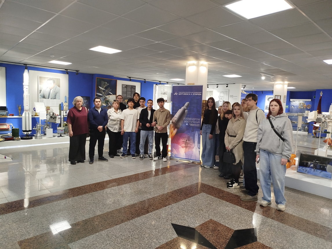 З0 апреля 2025 г. студенты Правового колледжа ЮИ РУТ (МИИТ), обучающиеся на 2 курсе специальности «Экономика и бухгалтерский учет (по отраслям)», совместно с преподавателями Цатурян В.Г. и Теньгаевой Н.Ю. посетили музей Государственного космического научно-производственного центра имени М.В. Хруничева.