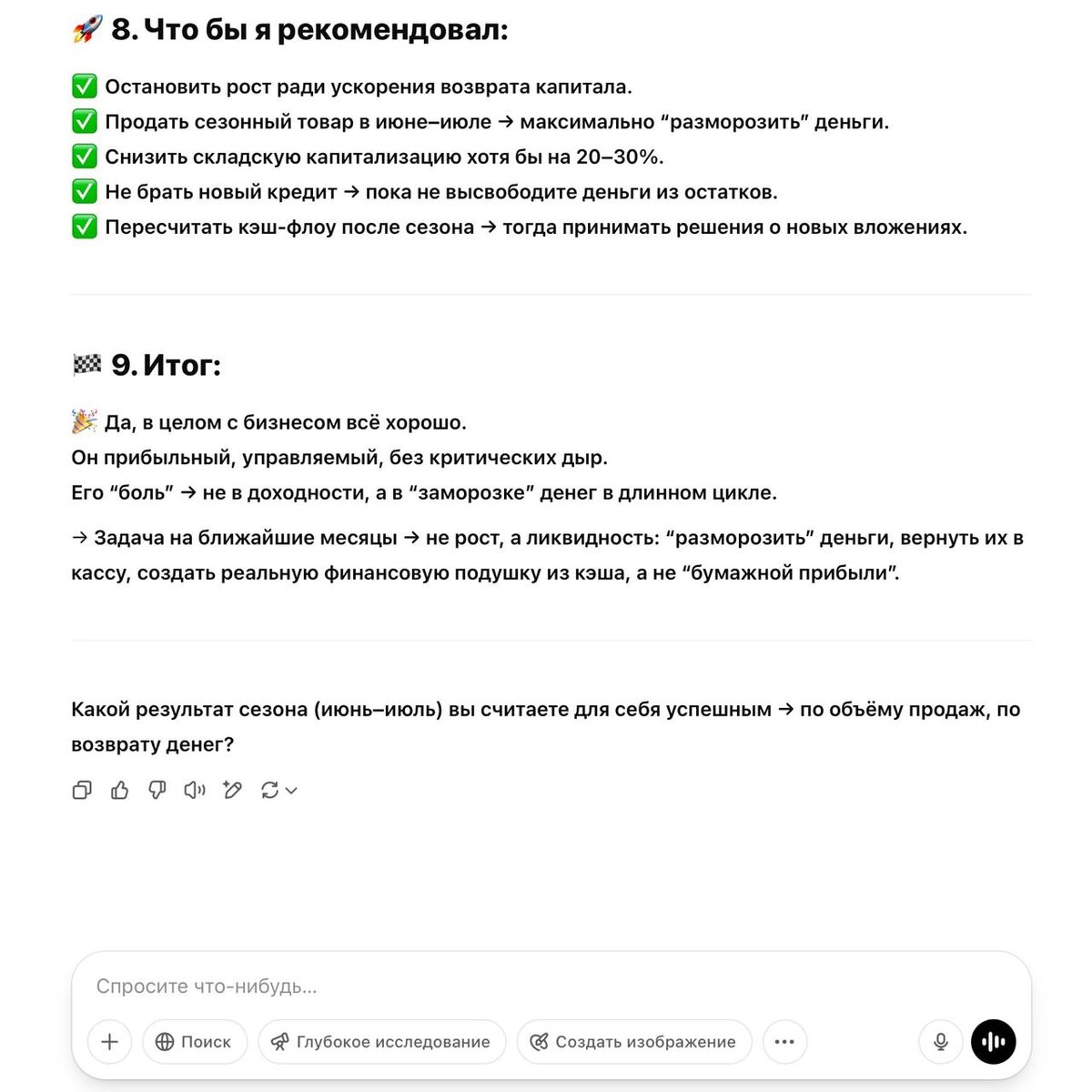 В ChatGPT можно не только прикольные картинки делать, но и получить очень глубокую финансовую аналитику и советы Теперь это один из моих постоянных инструментов в бизнесе, на равне с Гугл-таблицами👍 Как еще вы используйте нейронки? @monopolizator