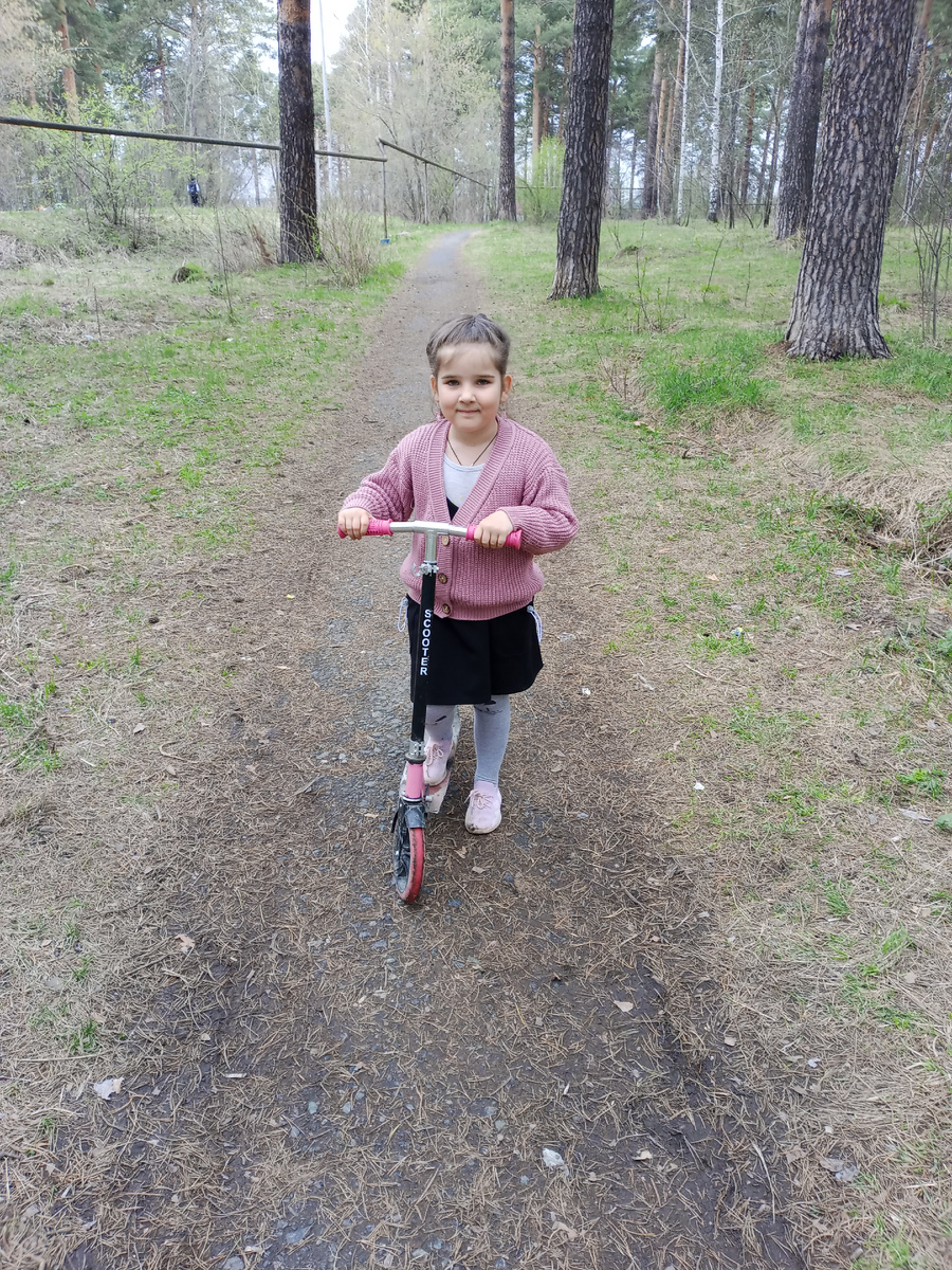 Добрый день! У нас сегодня с утра была замечательная погода, солнышко нас осчастливило своим присутствием. Мы как обычно проводили Амину в школу и занялись с Сафи домашними делами. Решили воспользоваться погодой и перестирать постельное белье и конечно вынести его на улицу, но пока оно стиралось, погода мгновенно нахмурилась и все небо заволокли тучи. Дождика не было и мы все таки вынесли его сушиться и отправились в школу. Амина у меня с утра просила, чтобы я принесла в школу самокат, ну мы и прихватили его. Небо хмурое, но тепло. Сафи у меня доехала вперёд на нём, а Амиша обратно. Мы с Сафи немного пофотографировались. Ездит она на самокате настолько отчаянно, у меня аж дух захватывает))) Ну конечно дороги оставляют желать лучшего, но все же они с удовольствием катаются. Амина к нам выбежала и первым делом рассказывает, что сегодня писали диктант и у неё 4. Пятерок в классе вообще нет, а четвёрки у пятерых детей, остальные тройки и двойки, как то так..... Завтра будет контрольная