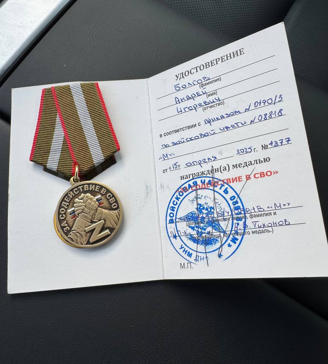Неожиданная благодарность от парней. Сегодня Павел передал награду «За содействие в СВО». Считаю, что это награда для всех, кто участвует и помогает в сборах для наших ребят. Напомню, что Павлу мы все вместе помогали с ремонтом автомобиля для отправки в зону спецоперации. А сейчас мы продолжаем сбор на коптер для Александра. На текущий момент собрали 36285.22р из 190000р. Александр является командиром отделения связи Танкового полка - выполняет специальные задачи в составе «Штурмового отряда». За мужество и отвагу, проявленные при исполнении воинского долга Александр награжден медалью За храбрость II степени.