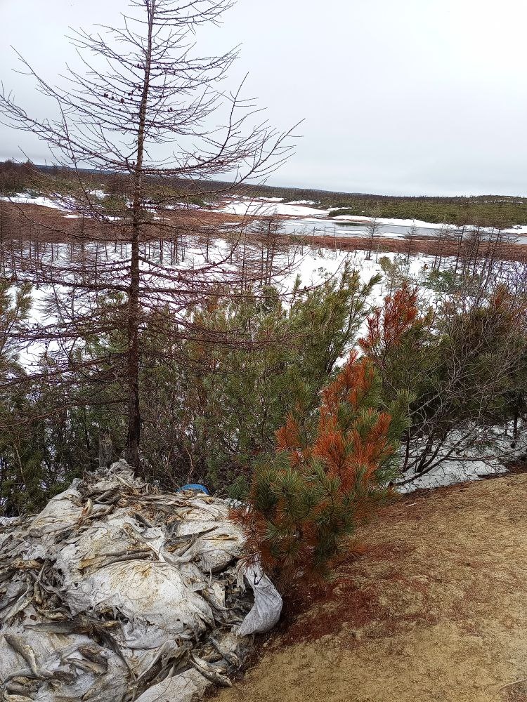 На трассе Южно-Сахалинск — Оха выявлена несанкционированная свалка мешков с навагой