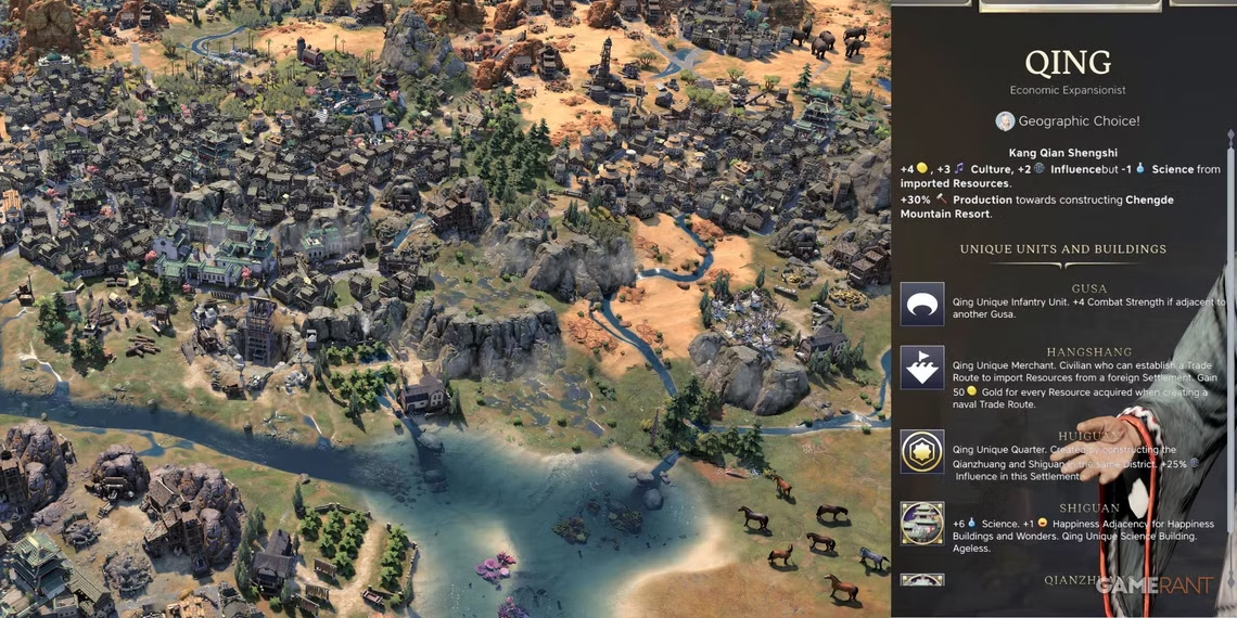 Civilization 7 (Цивилизация 7) продолжает радовать фанатов новыми механиками и цивилизациями, а Цинский Китай (Qing China) выделяется как настоящая звезда поздней игры. Если вы любите побеждать с помощью экономики, дипломатии и культурного влияния, этот выбор для вас! Давайте разберёмся, почему Цинский Китай — идеальная цивилизация для мощного финиша в Civ 7. 🏯✨ В отличие от цивилизаций, которые делают ставку на раннюю агрессию или научный прогресс, Цинский Китай раскрывает свой потенциал в современной эпохе. Её уникальная способность лидера, Kang Qian Shengshi (Процветание Кан-Цянь), кардинально меняет подход к ресурсам. За каждый импортированный ресурс (роскошный или стратегический) вы получаете бонусы к золоту, культуре и влиянию, жертвуя частью научного прогресса. И это работает! 🔄 Такой подход делает Цинский Китай мастером мягкой силы, где дипломатия и торговля важнее военных конфликтов. Вы не просто играете — вы формируете глобальную экономику! 🌍 В Civilization 7 экономическ