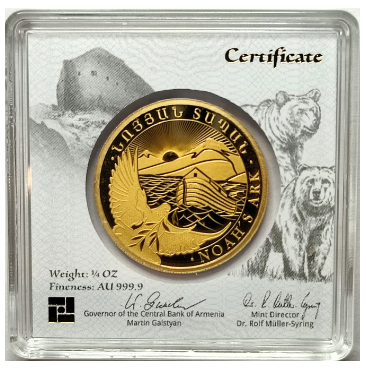 Монета номиналом 10,000 драм, выпущенная в 2025 году, является не только значимым элементом нумизматической культуры Армении, но и символом исторического наследия. Эта золотая монета посвящена Ноеву ковчегу — знаковому элементу древних мифов и религий, олицетворяющему спасение и надежду. На лицевой стороне монеты изображен Нойев ковчег, который стал символом сохранения жизни и защиты. Это не только художественное исполнение, но и культурный месседж, который отражает важность защиты окружающей среды и человеческой жизни. Монета 10,000 драм 2025 года, посвященная Ноеву ковчегу, является не только предметом коллекционирования, но и свидетельством культурного уникального наследия Армении. Инвестирование в такую монету — это возможность стать частью истории и поддержать ценности, которые она символизирует.