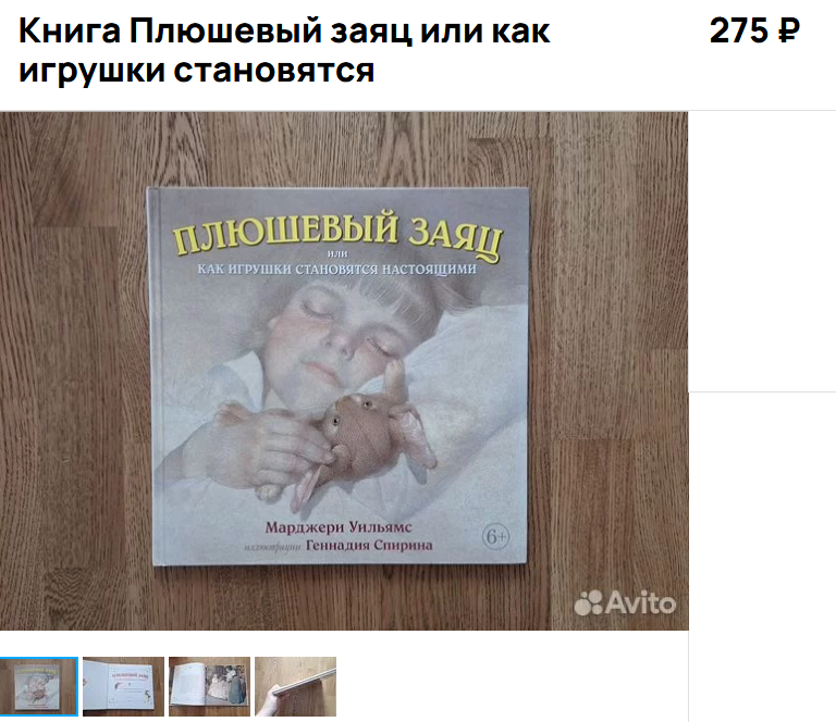 - Детская книга "Плюшевый заяц или как игрушки становятся настоящими" - 256 рублей. Когда я читала эту книгу сыну, я просто рыдала, да и сыну явно концовка не понравилась. Поэтому я решила, что не хочу больше перечитывать эту книгу и выставила ее на продажу, на удивление ее достаточно быстро заказали;