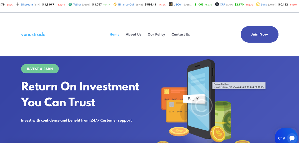 Сегодня всё больше трейдеров и инвесторов сталкиваются с сомнительными брокерами, которые маскируются под надёжные инвестиционные платформы. Одной из таких компаний является Venustrd.click. Сайт предлагает высокую доходность, доступ к финансовым рынкам и персональную аналитику. Но действительно ли стоит доверять этому ресурсу? В этой статье мы подробно разберём, что такое Venustrd.click, какие отзывы оставляют пользователи, какие риски существуют и как можно вернуть деньги, если вы уже стали жертвой обмана. Venustrd.click — это онлайн-платформа, которая позиционирует себя как международный брокер. На сайте обещается: Однако реальный опыт пользователей и независимые отзывы о Venustrd.click говорят об обратном — платформа вызывает серьёзные подозрения. Платформа предоставляет возможность торговли популярными инструментами: от криптовалют до акций. Venustrd.click обещает бесплатное обучение, доступ к торговым сигналам и персональных аналитиков. Регистрация на сайте занимает считаные минут