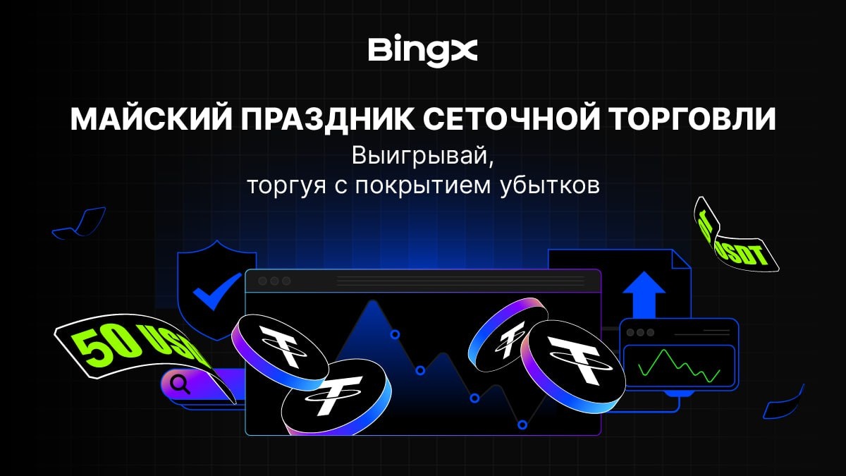 Сеточная торговля | Майский праздник 🎁 BingX подстрахует вас с помощью субсидии и начислит вам компенсацию, если ваша стратегия окажется убыточной. 🗓 1 - 15 мая 👥 Для ВСЕХ пользователей, кто прошел расширенную верификацию KYC Что вас ждет в рамках акции? 1️⃣ Бесплатная субсидия: ↳ Субсидия для ботов на 10 USDT без дополнительных условий ↳ Субсидия для ботов на 50 USDT 2️⃣Награда для новых пользователей сеточной торговли Пользователи, впервые создавшие спот сетку (или бесконечную спот сетку) для торговли любым токеном, которая действовала более 24 часов, и инвестировавшие в нее более 100 USDT, могут выиграть следующие ваучеры на монету. Переходите по ссылке ниже, нажимайте "регистрация" и присоединяйтесь к майскому празднику! 🔗 УЧАСТВОВАТЬ ⚠️ Если ты еще не зарегистрировался на BingX, переходи по нашей ссылке и получай скидку 3️⃣0️⃣➗ на торговые комиссии! 🔣 https://bingx.com/invite/1EESADRX #dyor