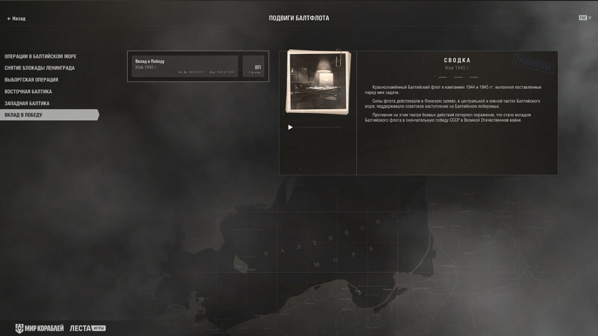 Подвиги Балтфлота" — скоро в порту! Обновление 25.5 подкрадывается — а с ним новое событие, жетоны и... штаб на борту "Максима Горького"! 📅 Старт уже 6 мая 🎖 Задача: выполняем боевые задачи и прокладываем путь через исторические операции Балтийского флота. Но это не просто список миссий — это теоретическая операция с картой, боевыми задачами и историей. Начинаем с блокады Ленинграда, а дальше — свобода выбора. 🔁 Механика проста: — Выбираешь операцию — В каждом бою получаешь случайную задачу (например, набрать чистого опыта) — Чем лучше бой — тем больше очков прогресса ☝️ Один бой — одна попытка. Следующий — новая задача. И да, уровень сложности у операций разный, так что не всё будет просто. 🎯 За прогресс — памятные жетоны, а если пройти все операции — дадут достижение + бонусы 💣 А ещё весь сервер работает на глобальную боевую задачу. Когда пройдём 180 000 операций, откроется новая карта "Последняя гавань", а те, кто внёс вклад, получат флаг “80 лет Великой Победе”. 🎁 Куд