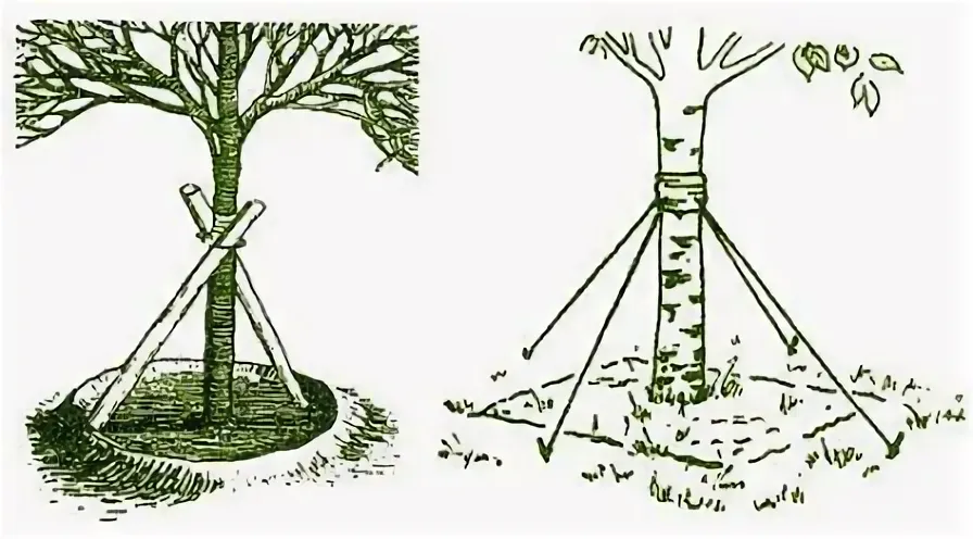 - Предохраняют молодой ствол от сгибания и искривления под воздействием сильного ветра.