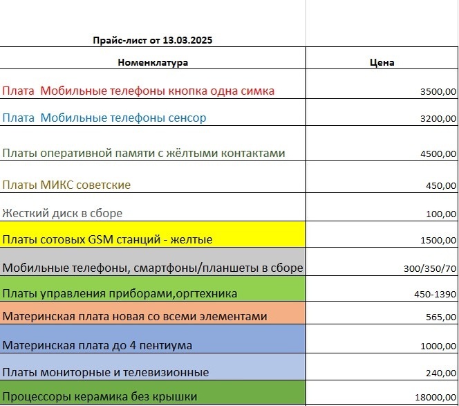 Прайс цен на платы 05.05.2025