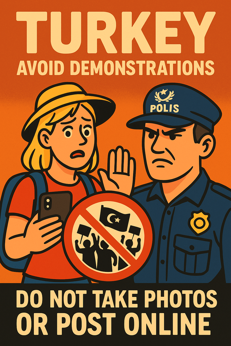 Турецкие власти официально предупредили: никакого участия в демонстрациях, никаких фото, никаких видео. Даже лайк под постом о протестах может стать поводом для того, чтобы вы внезапно оказались в прохладной камере с видом на решётку.