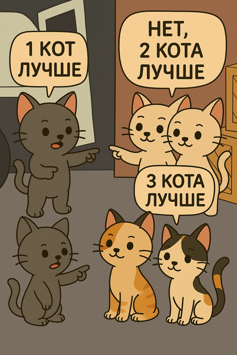 Но потом вспоминаем диван, который не пережил первого. Или ночные побудки. Или ревность хвостатого старожила. Так сколько котов — это «норма»? Один, два, три? А если хочется пять?..
