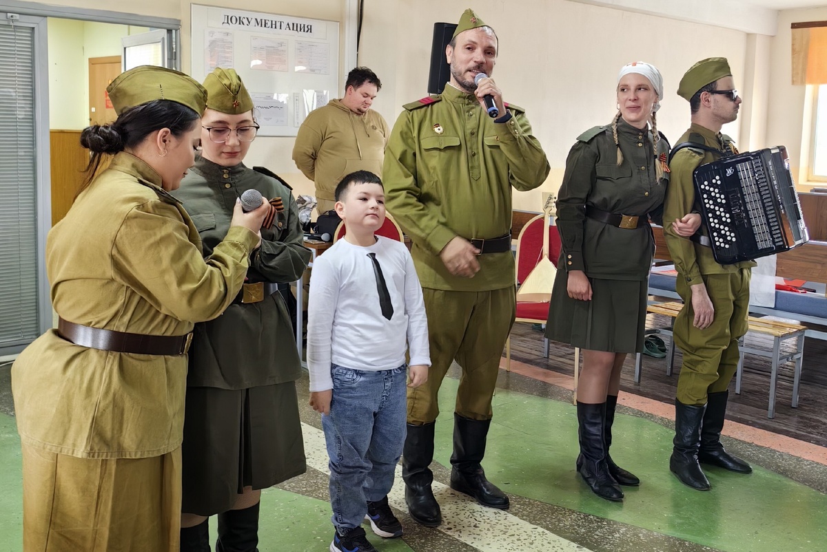 Для бойцов с импровизированной сцены прозвучали песни фронтовых лет и стихи советских авторов, посвященных военному времени и Дню Победы.