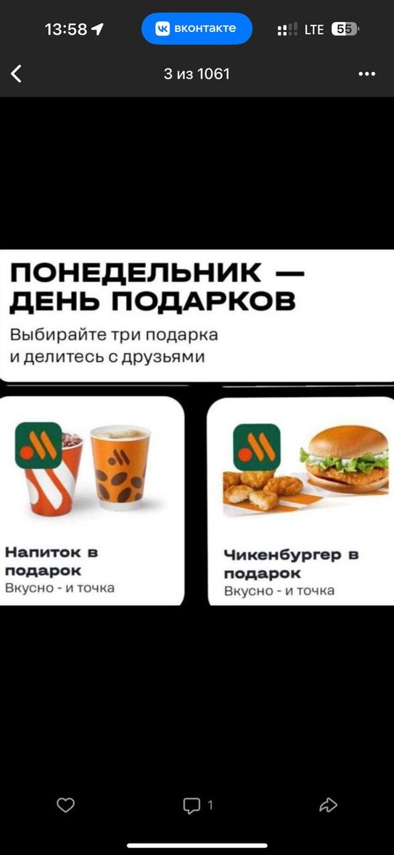 Щедрость Теле2 не знает границ. Сегодня стартовала акция Счастливый понедельник. Раздают кофе, чизбургер 🍔за 1 р, скидка на бенз 100₽ или на такси. Купоны можно применить только в понедельник. Акция каждый пн до 16 июня. У кого есть купончики поделитесь, пожалуйста, с голодным журналистом 😂 Же ма пель ди пасси жур