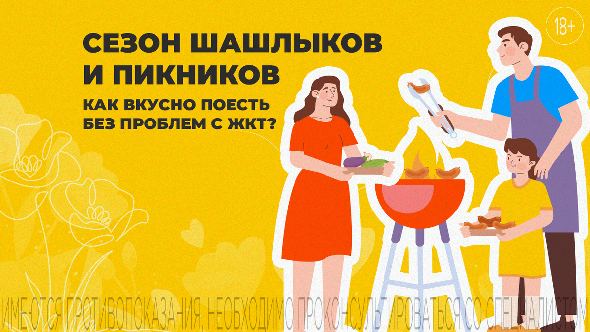 Начало мая – традиционно время первых пикников на природе. Выходные – удачные дни, чтобы собраться всей семьей или большой компанией друзей на даче или на природе. В меню таких мероприятий всегда есть шашлыки, снеки, соки и газировки. Но отдых не должен омрачиться тяжестью, вздутием и другими проблемами с ЖКТ. Поэтому важно позаботиться о себе, составить сбалансированное меню и не переедать.