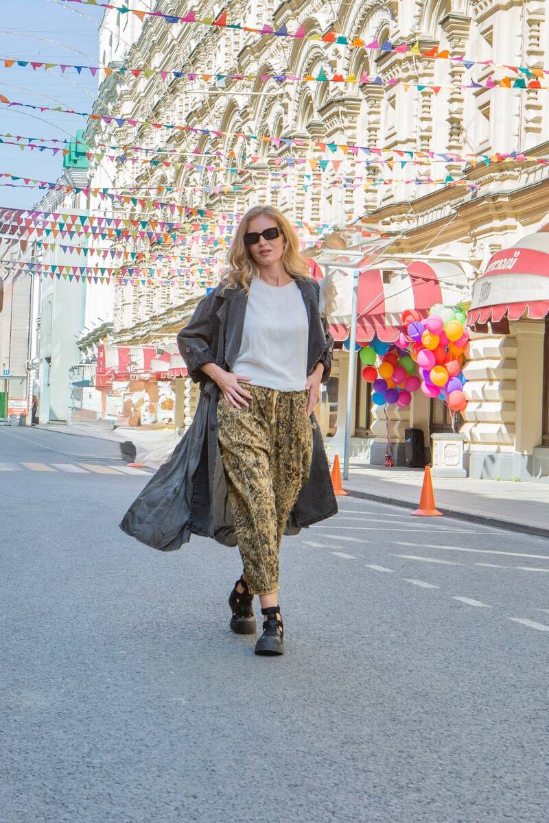 Аутфит от SANCTAMUERTE — концептуальная мода с акцентом на детали. ⠀ Летнее пальто-плащ в графитовом оттенке выполнено в характерной для бренда сложной конструкции: свободный крой, асимметрия, архитектурные линии. В качестве базового слоя — белая шёлковая футболка-блуза с необработанными краями. Её лёгкость, натуральная драпировка и минималистичная отделка подчёркивают философию бренда. ⠀ Завершает образ укороченные брюки-бананы из плотной ткани с уникальным принтом в стиле старинных фресок. Удобная посадка и слегка зауженный низ формируют выразительный и комфортный силуэт для города. Для оптового сотрудничества пишите нам: 📲-в директ 📲-по номеру 8 800 511 51 95 📲- +7 495 146-92-72 📲Наш сайт — https://sollery.pro ✉️-на почту info@sollery.fashion
