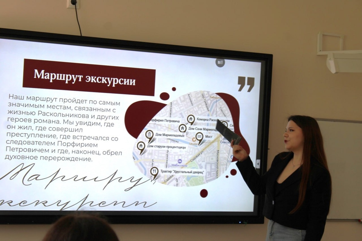 Занятие по литературе в медиаклассе Каждый учитель литературы мечтает о том, чтобы после его урока ученики испытывали вдохновение и захотели реализовать свои творческие замыслы. ❓Актуально ли чтение классической литературы среди молодого поколения? ❓Как приобщить современных подростков к прочтению великой классики? Именно такие проблемные вопросы задавала учитель литературы Юлия Владимировна Григорьева ученикам. На занятии ребята представляли свои творческие домашние задания. Всё это было выполнено в формате актуальных медиапродуктов: дневники и записки героев произведений, интерактивная экскурсия по Петербургу, буктрейлер по роману Теодора Драйзера «Американская трагедия». Результаты творческой работы ученики демонстрировали во время своих ответов, делясь своими впечатлениями: «Мы создали буктрейлер, потому что очень хотелось порекомендовать свой любимый роман Теодора Драйзера «Американская трагедия» одноклассникам. Больше всего понравился сам процесс подготовки, ведь если тебе и