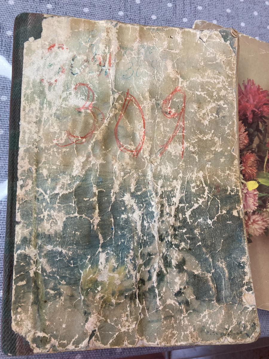 Эту тетрадь своими руками смастерил ей её муж, мой дедушка Григорий (родился 1909- умер 1969 в г.Енисейск), который был участником войны. Пришёл с фронта с простреленной ногой, она была короче другой на несколько сантиметров... Поженились они в 1945 году, сразу после войны...