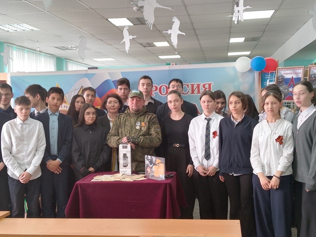 В рамках Года поддержки участников СВО и членов их семей в Межпоселенческой центральной районной библиотеке Салаватского района Башкирии прошло интересное мероприятие. Здесь состоялась встреча учащихся 8 «А» класса Башкирской гимназии с. Малояз с бойцом СВО Афтаховым Вадимом Хабибулловичем, находящимся в краткосрочном отпуске. Встреча прошла в формате «Вопрос – ответ». Учащиеся задавали бойцу вопросы о его жизни и службе, интересовались условиями, в которых живут и питаются солдаты на передовой. Школьники слушали внимательно и увидели на примере этого бойца, что настоящие герои живут рядом с нами. Они узнали, что мужество, храбрость и любовь к Родине - это качества, которые отличают патриотов и настоящих граждан России.