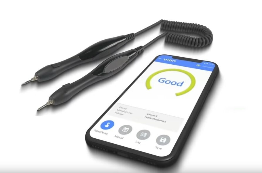 В отличии от традиционного мультимтера Vion представляет собой, по сути, лишь пару измерительных щупов, которые по Bluetooth, сопрягаются со смартфоном, использующего специальное приложение (доступное как для Android-платформ, так и для iOS). Показания измерений автоматически отправляются на смартфон, отражаясь на его экране.