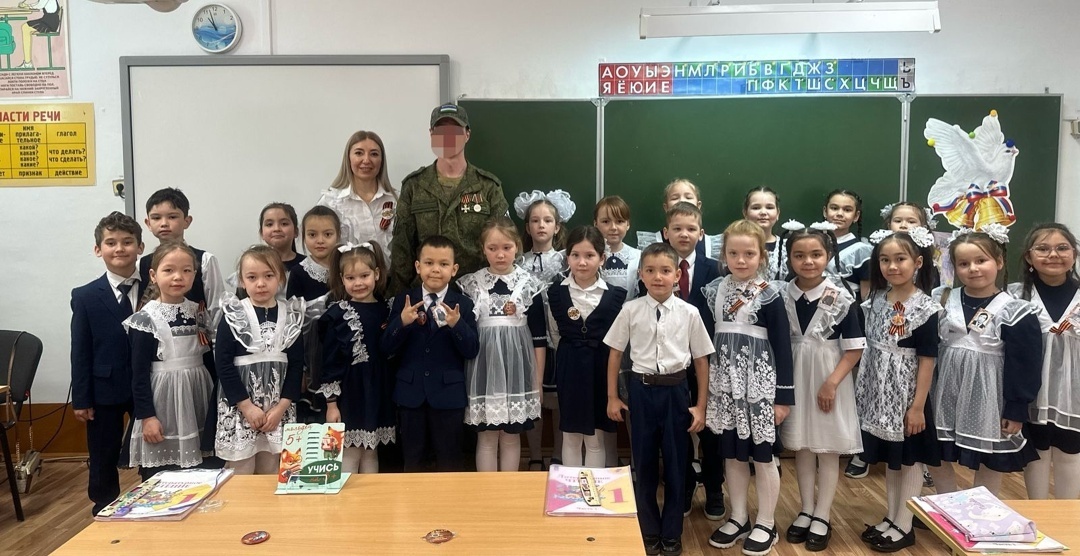 В рамках мероприятий, посвящённых Году защитника Отечества и в преддверии празднования 80-ой годовщины Великой Победы, в 1а классе гимназии села Кармаскалы прошла встреча с участником специальной военной операции Станиславом Рустамовичем. Боец приехал в родные места в краткосрочный отпуск из зоны боевых действий. На встрече он рассказал ребятам о солдатской службе, о своих боевых обязанностях, подчеркнул, что современный военный должен быть не только физически подготовленным, но и обладать глубокими знаниями, уметь быстро принимать решения в сложных ситуациях, быть готовым защищать свою Родину. Также отметил, что для солдат, участвующих в спецоперации очень важна моральная поддержка родных и всего общества, поблагодарил детей за искренние письма и открытки, которые они с волнением читают и бережно хранят. В рамках встречи ребята задавали вопросы про военные будни, вооружение наших солдат, бытовые условия проживания на передовой, трудности, с которыми приходится сталкиваться. В заверше